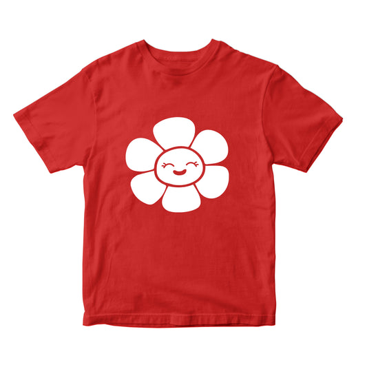 Kids Red Glow-in-the-Dark Flower T-Shirt – Round Neck Half Sleeve | Cute Kawaii Design