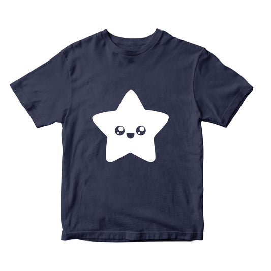 Kids Navy Blue Glow-in-the-Dark Star T-Shirt – Round Neck Half Sleeve | Cute Kawaii Design